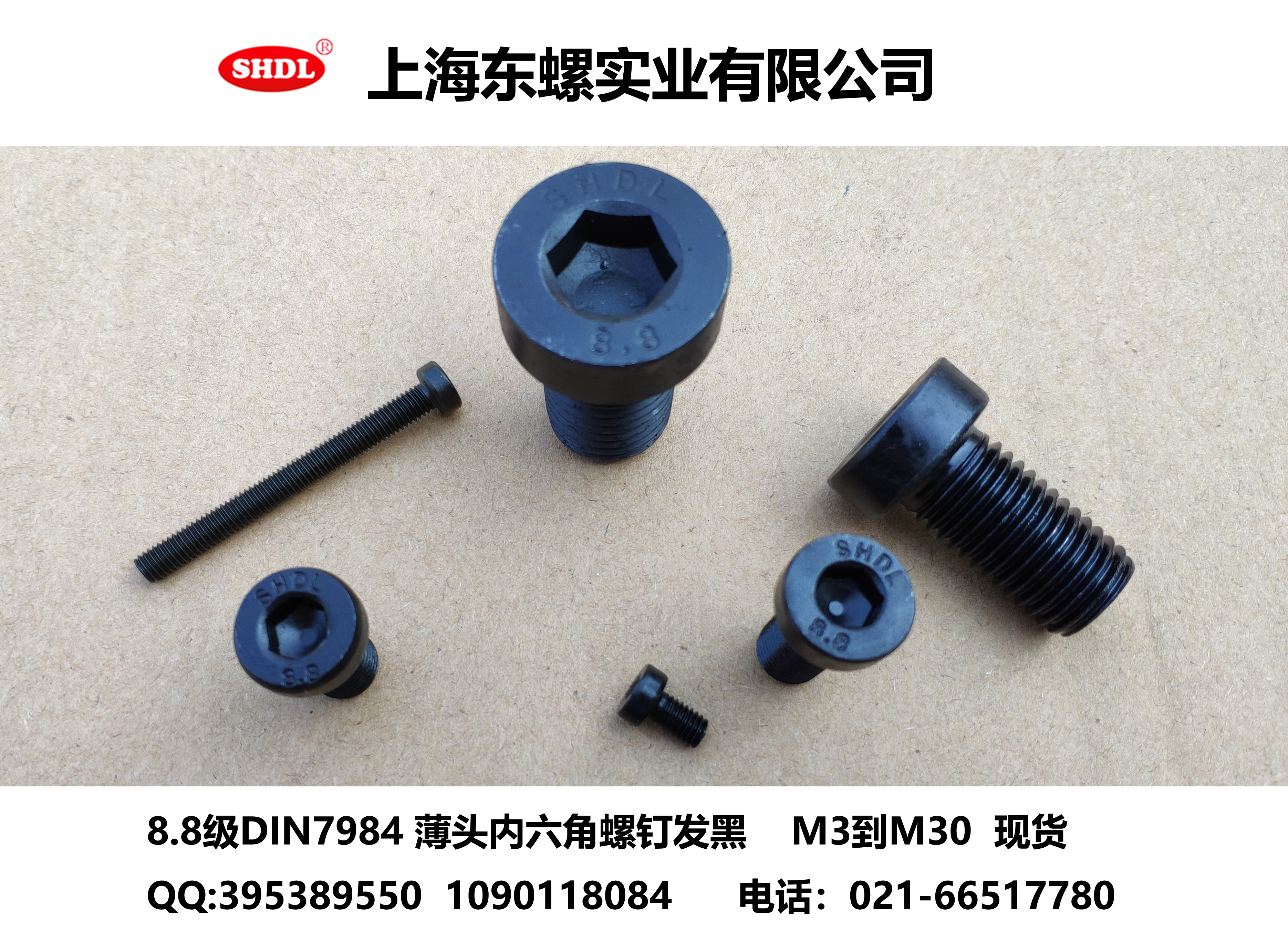 8.8級DIN7984薄頭內六角螺絲,規(guī)格:M3-M30,表面處理:發(fā)黑,蘭白鋅等.